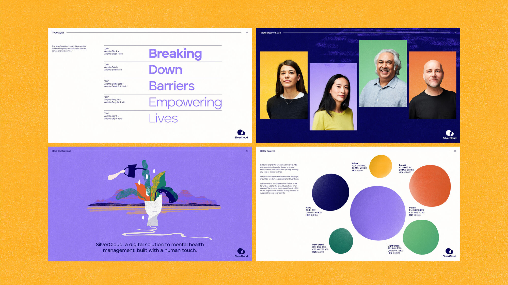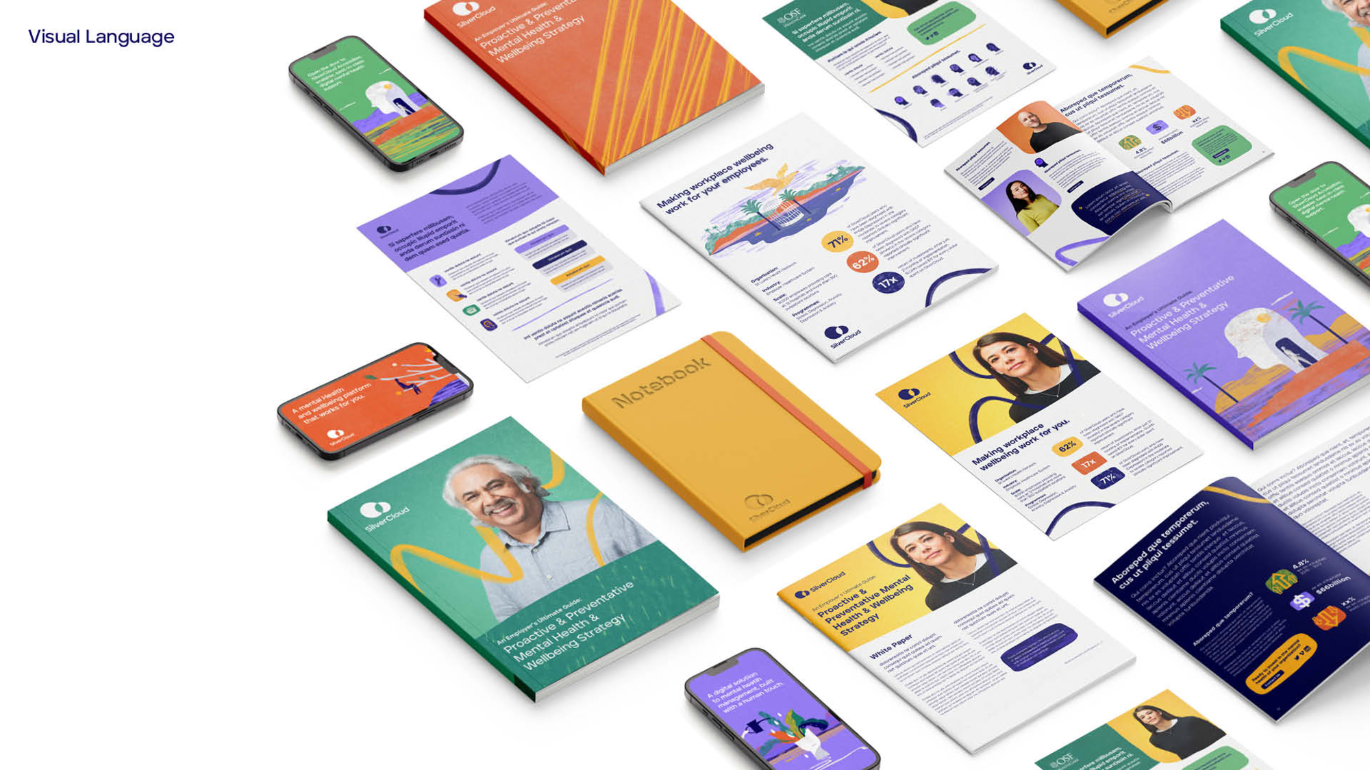 Mental health affects every aspect of our lives. There's a high demand for those who provide mental health services, from medical practitioners to human resources departments. SilverCloud is a digital mental health platform that provides 24/7 access to clinically-backed tools and resources, reducing the pressure on organisations. Understanding the need to give their very clinical feeling brand a full refresh, we put together a human-centric approach to break down barriers and make the brand more approachable and tactile at every touchpoint.